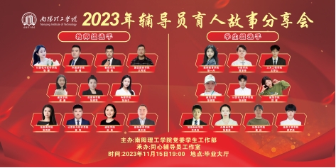 据了解,党委学生工作部举办此次比赛,旨在集中展示我校辅导员爱党爱国、以生为本、潜心育人、自信自强的典型事迹、优良品质和育人实效,突出展现南工青年学子在成长成才过程中与辅导员老师的温暖瞬间、感动故事和美好回忆,通过夯实一线工作,强化辅导员队伍建设,推动学校思政工作高质量发展。
