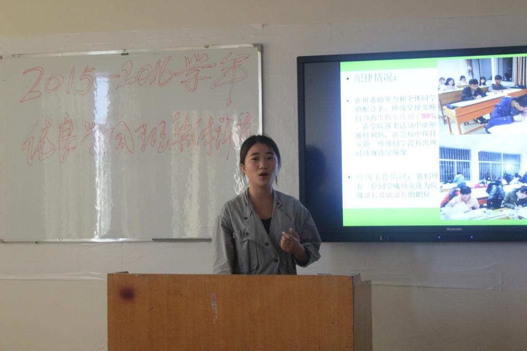 我院于10月14日起正式开展优良学风班级评选相关工作,由各班进行自主申报。由我院团学办公室审核合格后的班级,在班内选拔出一名代表参加10月18日汇报展示。各班代表为本次展示准备了精美的PPT,每人在规定的时间自由展示。他们从班级成绩,班级纪律,班级学风及班级活动等各个方面,向在场人员全面展示了他们的班级及竞选优势。在场观众无不认真倾听,其中活动的细微之处让曾经参与到活动中的老师们深有感触,全场气氛和谐温馨。据在场一名同学所言,“通过本次评选,借鉴了其他班级的管理制度及学风建设,为今后开展工作积累了经验。”