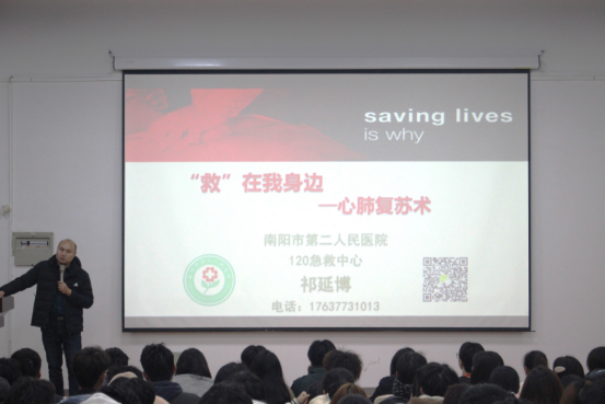本网讯(特约记者/田真 学生记者/李婧)为积极普及、规范AED(自动体外除颤器)设备的使用方法,提高学生的应急救护能力,12月7日,6686体育特邀南阳市第二人民医院祁延博主任医师来校开展应急救护培训会。