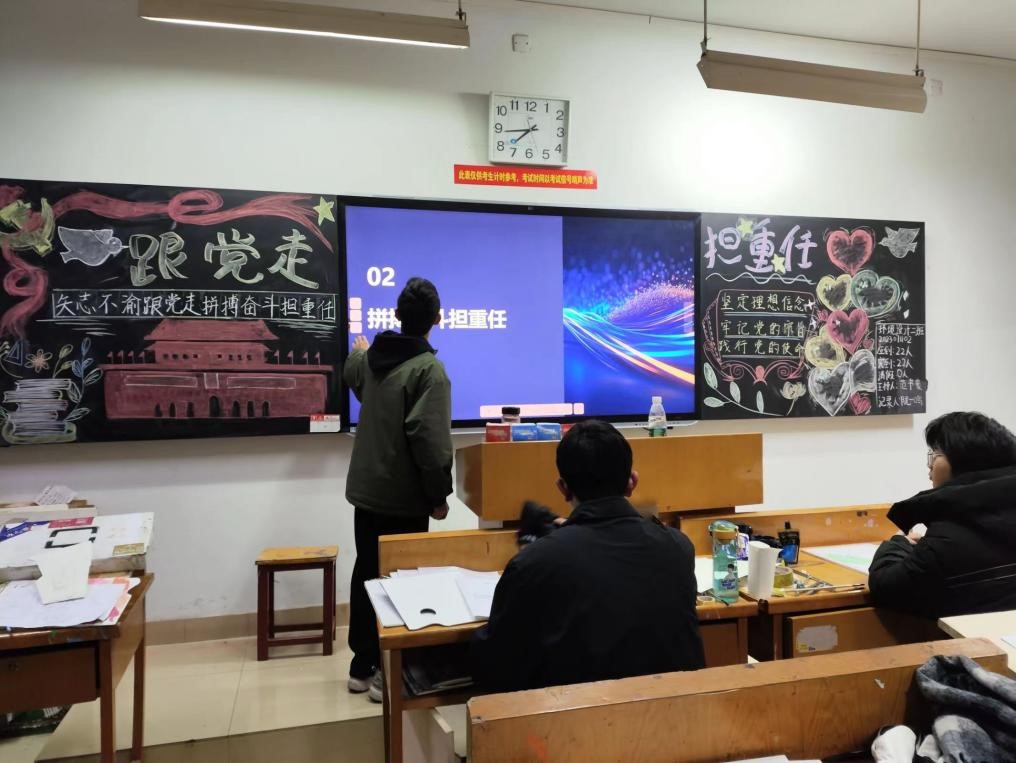 本网讯(学生记者/周静爽)为全面贯彻党的二十大精神,深入学习贯彻落实习近平法治思想和习近平总书记关于青年工作的重要思想,引导广大团员青年坚持把党的理论学习作为首要任务,12月17日晚,6686体育于各班专业教室开展“矢志不渝跟党走,拼搏奋进担重任”团日活动。