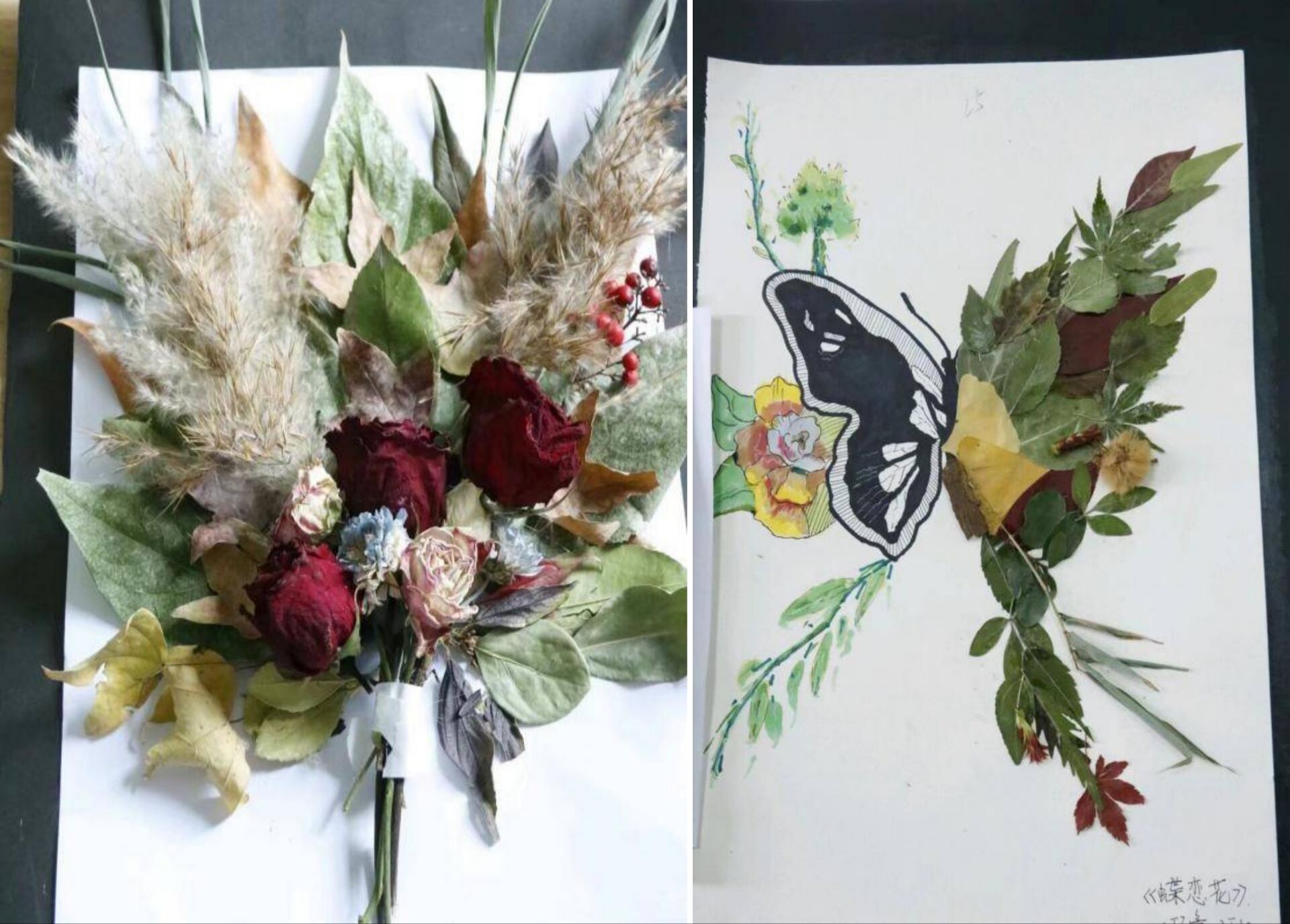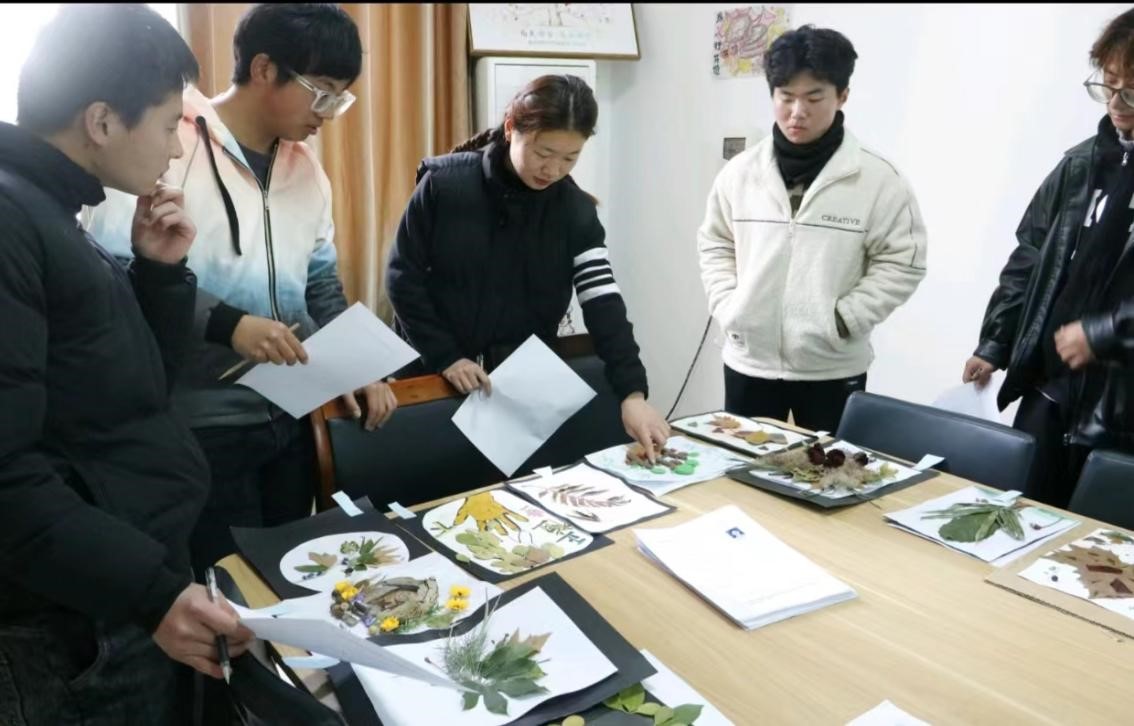 此次活动中,参赛同学以植树节为主题,利用花叶、树枝等材料,在纸上以粘、贴、画的方式进行灵感创作。评选现场,评审团成员依据作品主题、元素、创新性及整体效果进行打分并汇总讨论,以此评定出优秀作品。