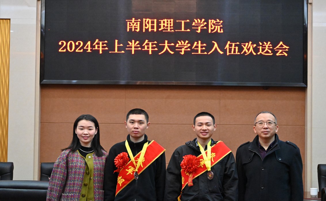 本网讯(记者/田真 鲍雅芯)3月12日,我校在毕业大厅隆重举行2024年上半年大学生入伍欢送会,副校长葛晨光、校党委学生工作部、人民武装部及相关学院负责同志参加座谈。我院22环境专升本1班毕业生杨湘雨、20环境2班毕业生代天佑顺利通过征兵各项程序考核,被批准入伍,即将踏上报国从军之路。