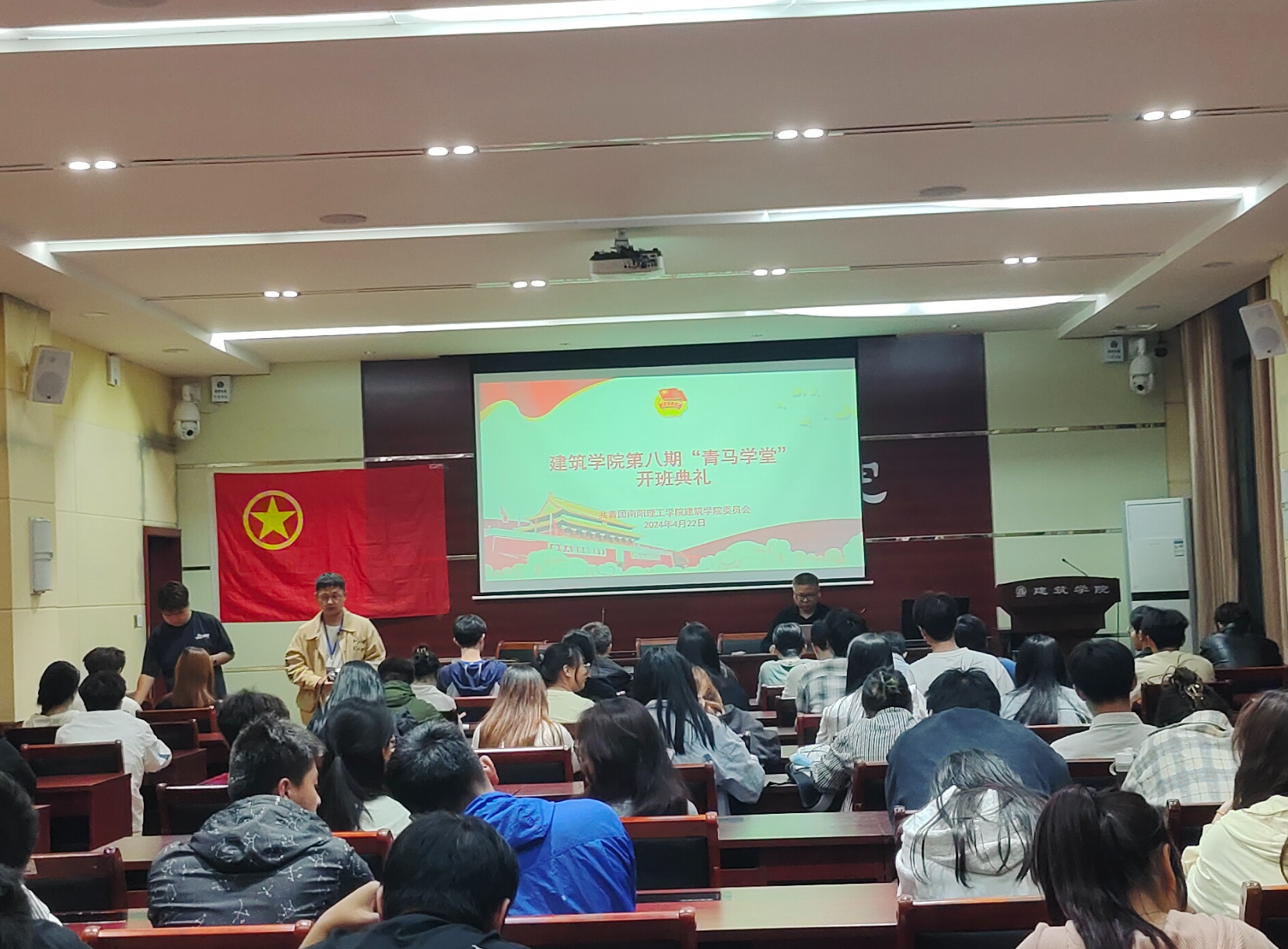 本网讯(特约记者/田真 学生记者/鲍雅芯)为进一步加强对青年学生的政治锻炼和思想引领,4月22日晚,6686体育第八期“青马学堂”开班仪式暨第一讲在7106多功能报告厅举行,学院党委书记田光辉及相关团委负责老师出席活动,86名青马学员到场参加。