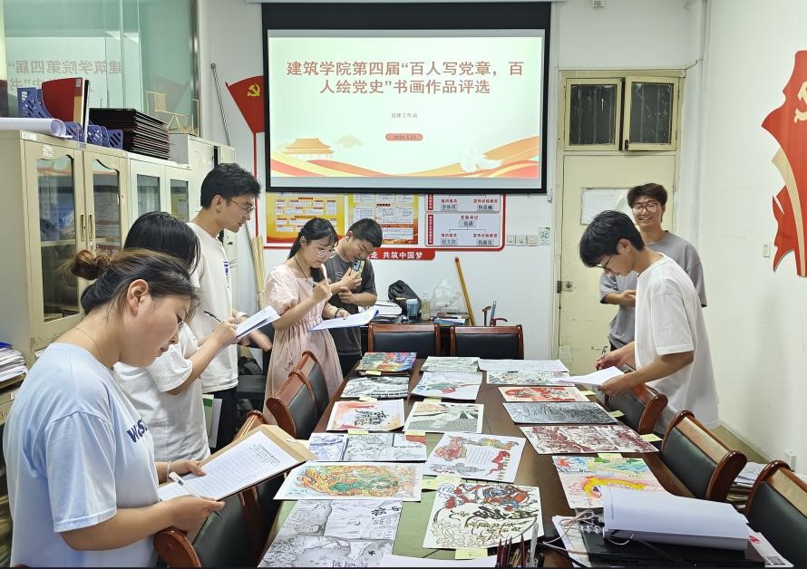 此次“百人写党章 百人绘党史”主题书法、绘画作品展示活动,充分展示了建筑学子的风采,也为校园文化建设增添了一抹亮色。