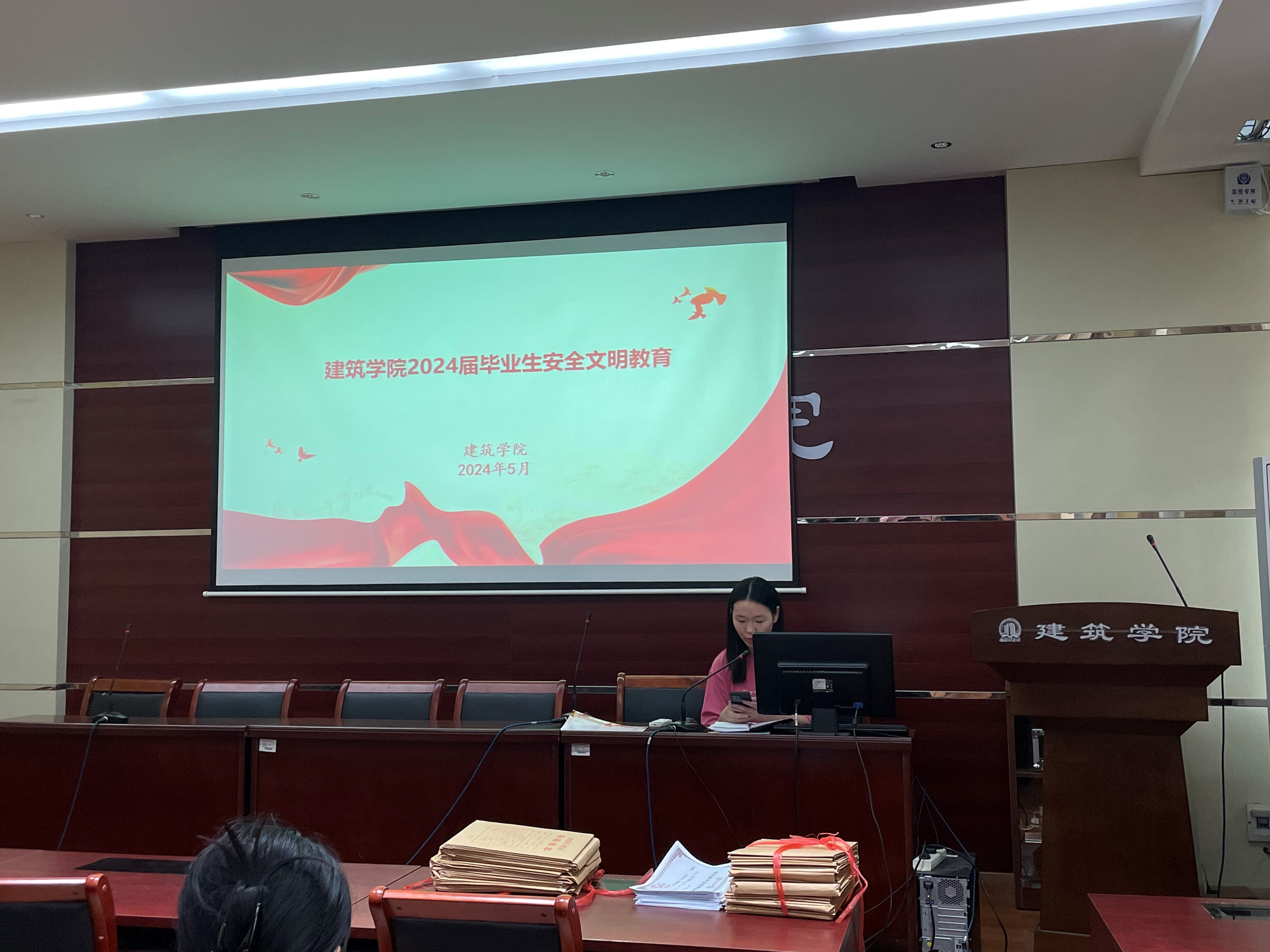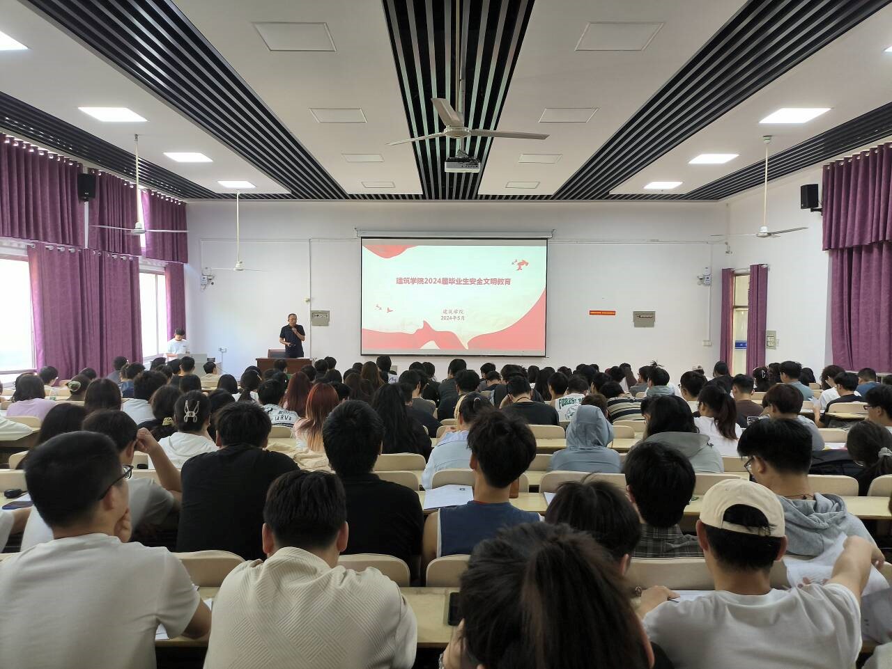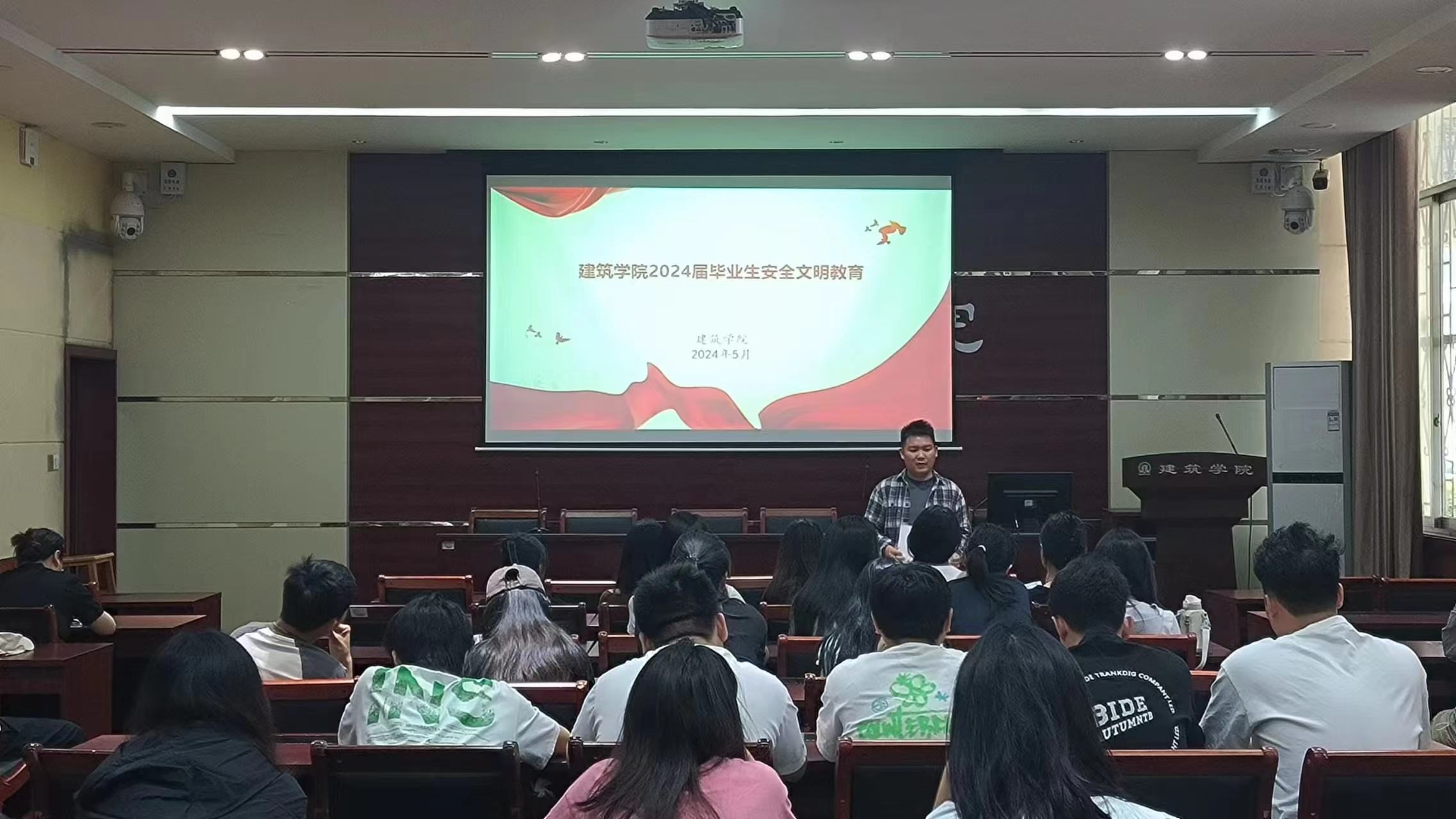 本网讯(记者/侯潇)为确保毕业生安全、文明、有序离校,5月17日,我院召开2024届毕业生文明离校主题大会。学院党委副书记张辉、毕业班辅导员李明东、侯潇及2024届全体毕业生到场参加。