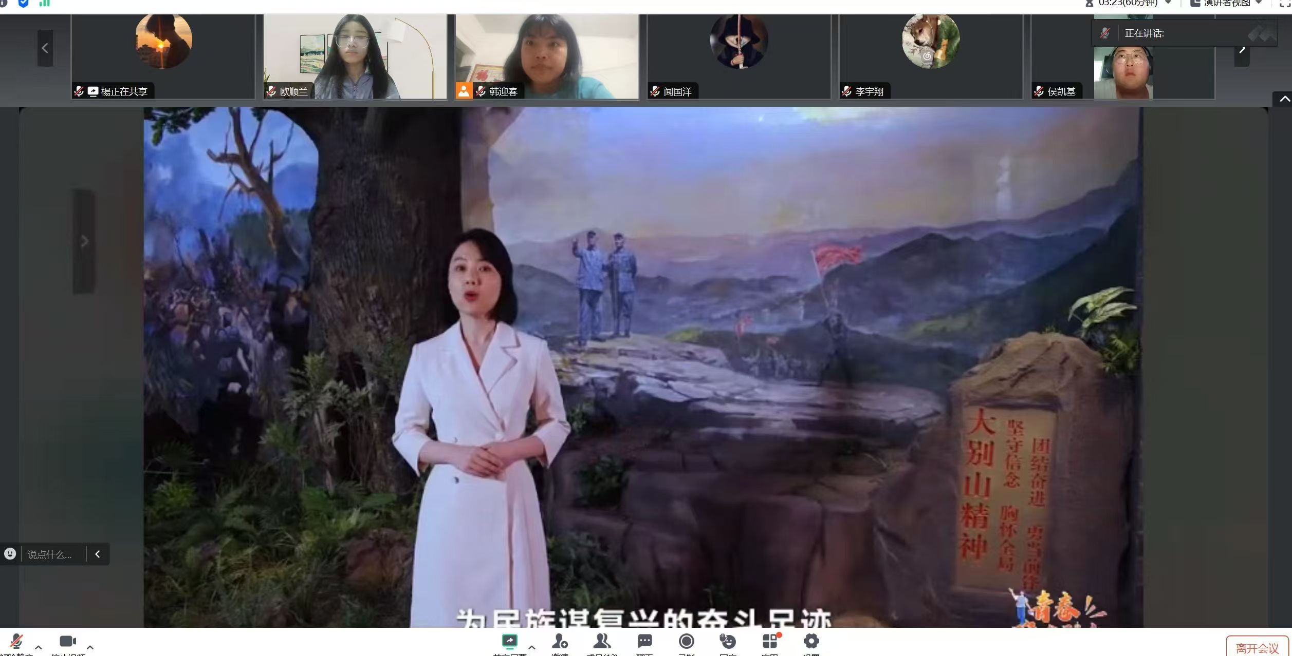 直播内容从革命老区大别山的坚韧不拔,说到人民公仆焦裕禄的无私奉献;从红旗渠畔的艰苦奋斗,直至载人航天领域的辉煌成就,这些精神如同一盏盏明灯,照亮了中华民族前行的道路,也激励着当代青年学生勇担时代使命。整个直播活动内容丰富、形式多样、互动性强,吸引了大量青年学子的关注和参与。大家纷纷表示,通过此次活动更加深刻地领悟到了中国精神的伟大力量和时代价值,更加坚定了为实现中华民族伟大复兴的中国梦贡献青春力量的决心和信心。