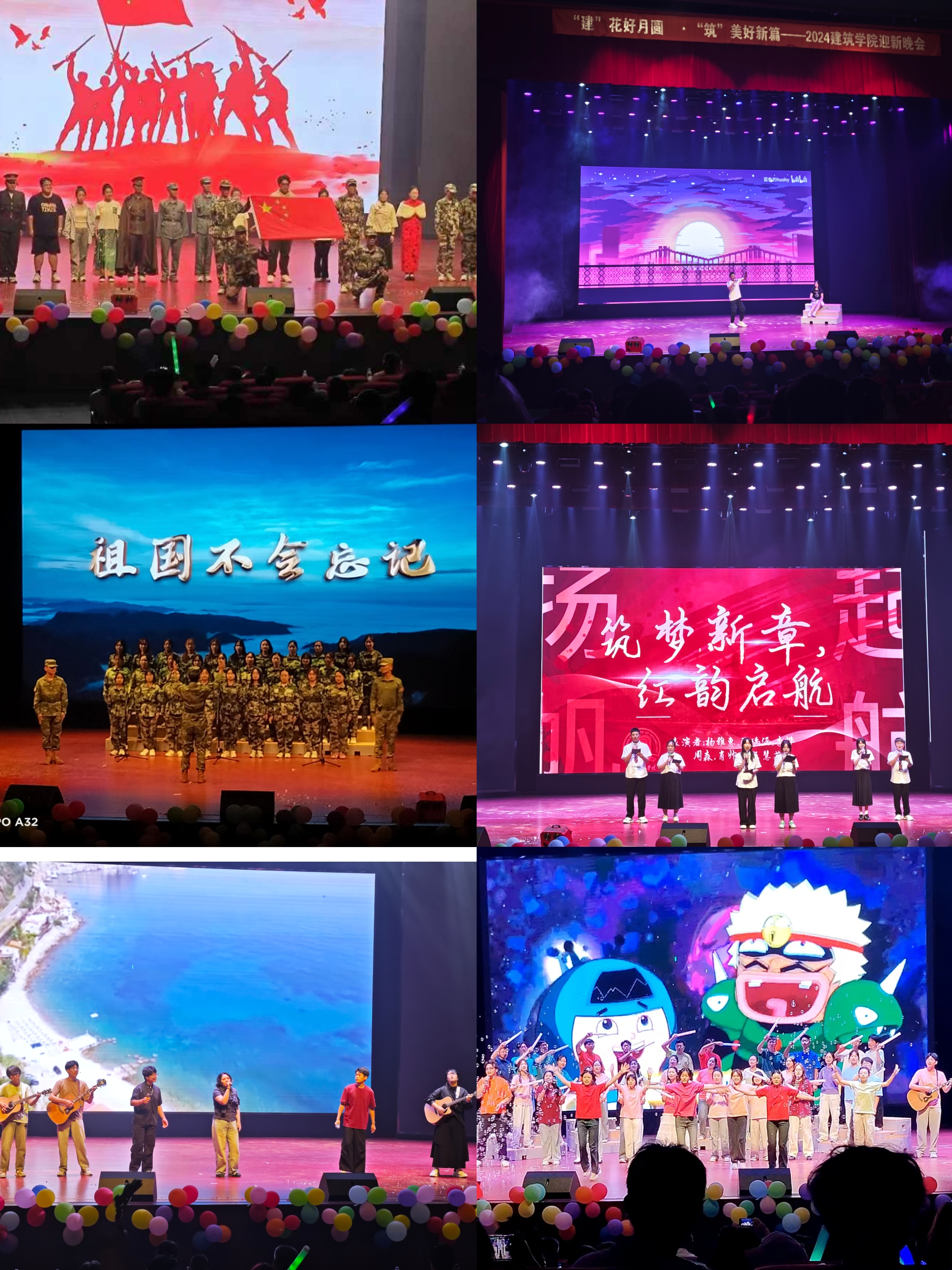 晚会在精彩的歌舞表演《开心往前飞》中拉开序幕。作为“全民国防教育日”特色活动,本次迎新晚会融入了丰富多样的爱国主义、国防教育元素,歌曲《祖国不会忘记》展现了24级新生在军训场上的英姿与吾辈当自强的决心,话剧《士兵突击》与舞台剧《我有一个梦,携笔去从戎》收获了全场的热烈掌声,诗朗诵《筑梦新章,红韵启航》抒发了南工学子争做新时代优秀青年、开创人生新篇章的心声……演出最后,学院全体教师齐声合唱《我和我的祖国》,迎新晚会圆满落下帷幕。
