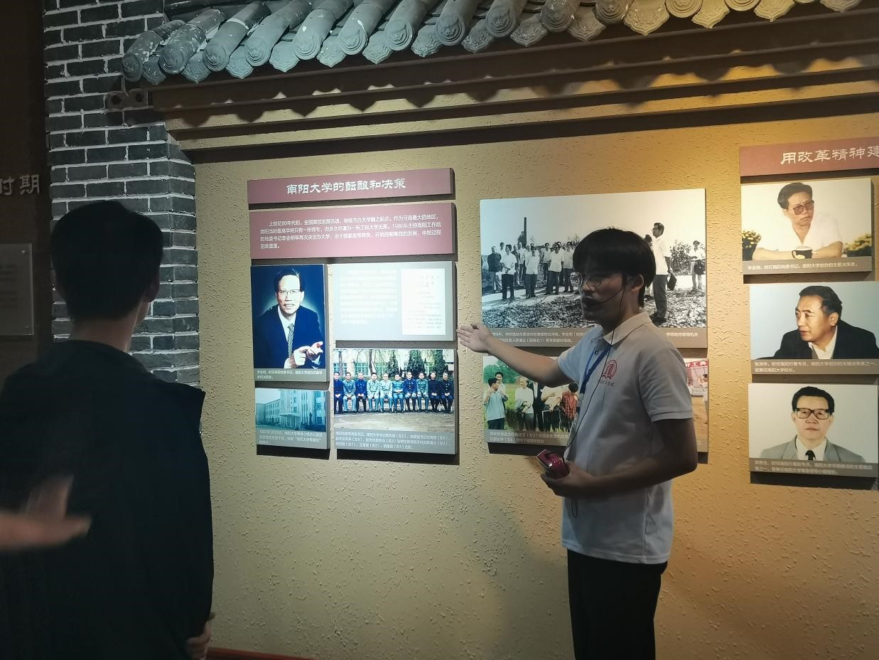 校史馆内,同学们在讲解员的带领下依次了解学校的发展历程,通过一张张珍贵的照片、一段段深刻的文字,回顾着南阳理工学院建校以来艰苦奋斗、励精图治的艰辛历程,感悟一代代南工人自强不息的进取精神。