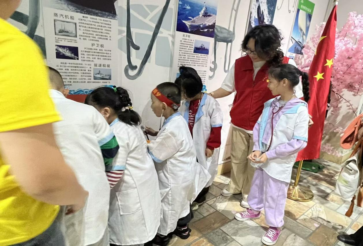 活动中,小朋友们围坐一团,身穿不同的衣服,前往不同的地点,模拟不同职业的工作场景,有的扮演医生给“病人”治病,有的扮演交警指挥交通,有的扮演消防员叔叔尝试灭火。志愿者也在陪伴的同时深切感受到这些职业的不易,通过讲述不同职业的故事,鼓励小朋友们说出对感兴趣职业的了解与感受,激励他们树立远大志向,争做对社会有用的人。