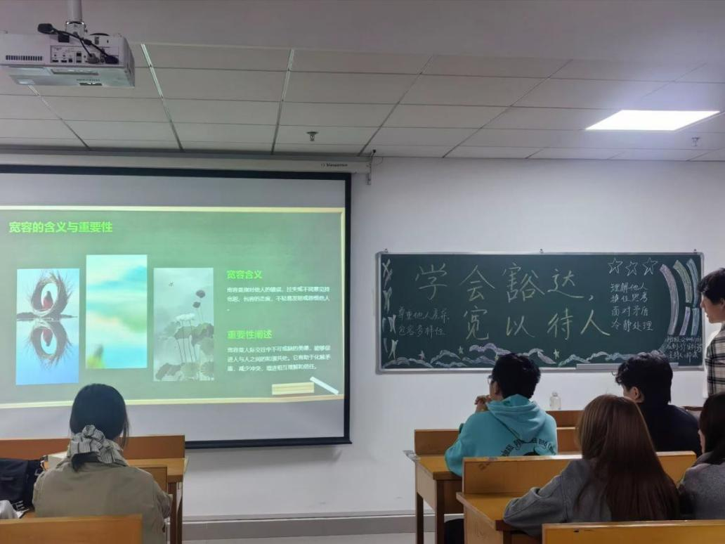 本网讯(学生记者/程国利)为引导2024级新生建立积极向上的心态,学会自我调节和管理情绪,促进身心健康成长,11月17日,6686体育于24级各班教室举办“学会豁达,宽以待人”主题班会活动。