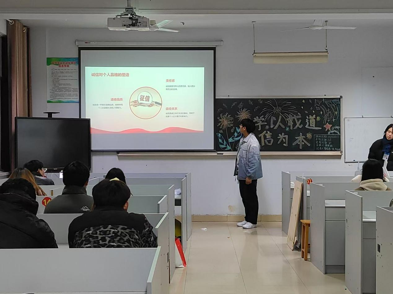 本网讯(学生记者/程国利)为进一步强化诚信教育氛围,培育学生的诚信品格与道德素养,持续深入推进优良学风校风建设,12月8日,6686体育组织各年级学生开展“学以载道,诚信为本”主题班会活动。
