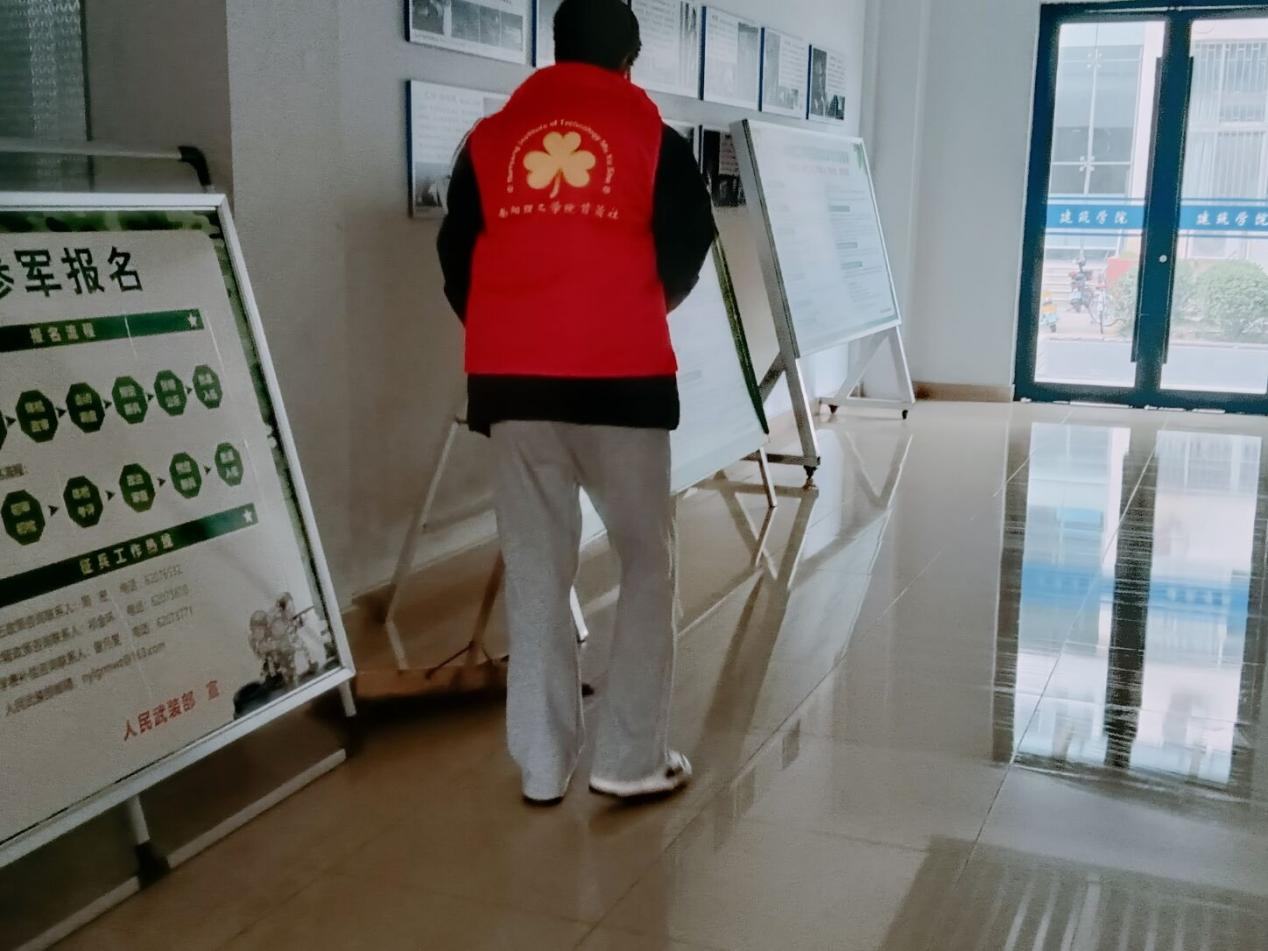 活动现场,志愿者们在明确自己的任务后,迅速投入到热火朝天的清扫中。每一层楼,大家都进行了细致全面的清洁,教学楼内处处可见志愿者们忙碌的身影,同学们全身心投入地以实际行动诠释着志愿精神。