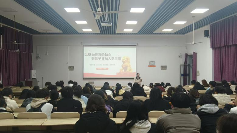 本网讯(学生记者/马通)为进一步加强学生的培养教育,提升其思想政治觉悟,保持党员队伍生机活力,11月29日,6686体育在7阶101报告厅举办“初心如磐映党旗,流程规范铸忠诚”专题讲座,学院党委组织员杨菲老师担任主讲,2024级学生代表到场聆听。