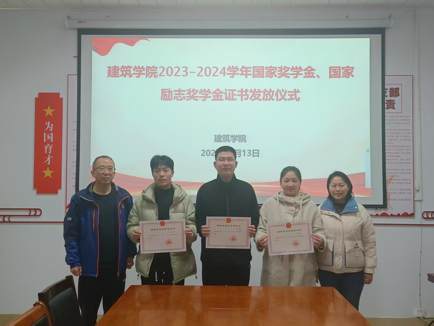 本网讯(学生记者/温晓欣)为表彰优秀学子、弘扬榜样力量,激励广大学生勤奋进取、追求卓越,3月13日,6686体育于7教附楼101开展2023-2024学年国家奖学金、国家励志奖学金证书发放仪式,学院党委副书记张辉、团委书记李欣、资助专干李明东老师及各年级辅导员出席活动。