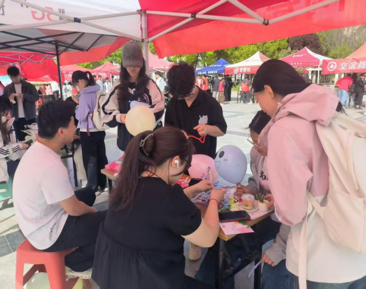 活动现场,精心布置的绿植区域宛如一片生机勃勃的绿色海洋,同学们在绿植前驻足,眼眸中闪烁着对自然的向往与热爱,认真挑选着心仪的“绿色伙伴”。与此同时,扭扭棒创意制作区也热闹非凡。同学们化身为春日艺术家,用五彩扭扭棒勾勒出花朵的婀娜姿态,将对春天树林、花朵的细腻审美倾注于指尖创作,大胆展现对美的独特理解。当手中的扭扭棒变成娇艳花朵,仿佛同学们也成为了春天的一部分,与自然和谐共融。