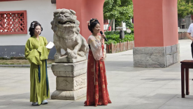 活动现场,讲解员身着汉服全程引导,医圣祠的古风建筑搭配艾草、菖蒲、竹帘等传统元素,营造出浓厚的端午氛围。
