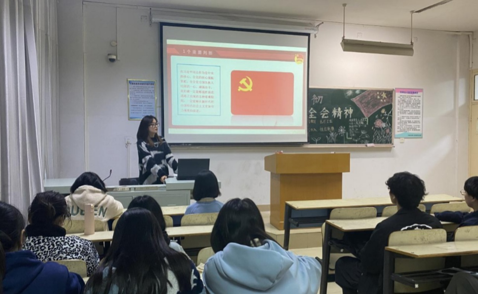 主题团课上,各班以十九届五中全会精神为主要线索,采取视频和PPT相结合的形式开展学习。在学习过程中,每个班级都重点学习领悟了十九届五中全会立足于“两个一百年”历史交汇点的重大历史意义,并在团支书的带领下深入了解了大会流程、我国现阶段取得的成就和未来远景目标三个方面的内容。最后,同学们围绕团课主题进行了讨论和思考。