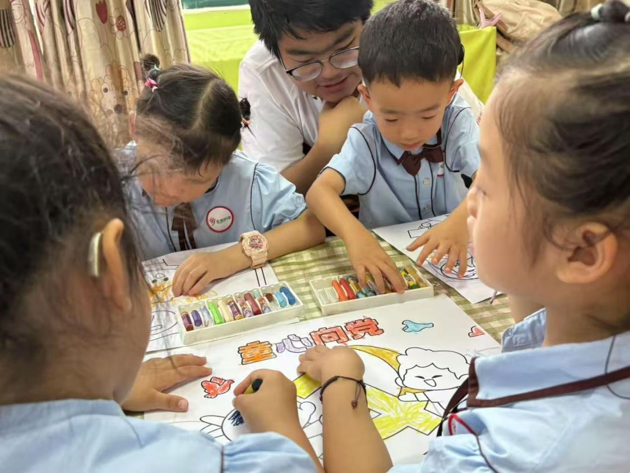 6月30日,服务队前往南阳未来聋儿听力语言康复中心开展活动。志愿者以“红色精神传承”为核心,向小朋友们讲述了发生在南阳本地的“七里岗突围”历史故事,还原了革命年代的艰难环境与先辈们的英勇无畏;同时结合长征途中“血战湘江”的经典战役,阐释了毛泽东等革命领袖在土地革命战争中展现的卓越智慧与军事才能。