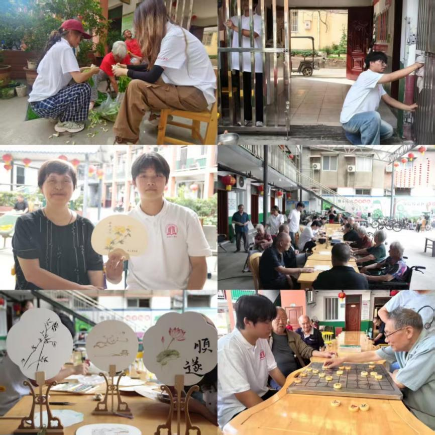 养老院内,服务队围绕文化体验、环境改善、情感陪伴等板块开展服务。在文化互动环节,烙画与水彩扇子制作展现出专业特色,学生们结合自身美学素养,带领老人进行烙画创作与水彩扇面绘制,既锻炼了老人们的动手能力,又让传统工艺在代际互动中焕发新彩;在文艺表演环节,精心编排的节目贴合老人审美偏好,现场掌声不断,笑声融融;劳动实践中,队员们对养老院公共区域进行深度清洁,显著提升了环境整洁度;情感陪伴环节,学生们围坐老人身旁,倾听人生故事、教授手机使用技巧,或与老人对弈下棋,用真诚交流打破养老院日常的单调氛围。