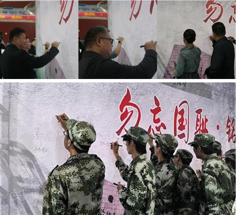 国旗护卫队退场后,校党委副书记董豪致辞,他强调“历史是最好的教科书”,激励师生勿忘国耻、勇担时代使命,为民族复兴贡献青春力量。他提出三点希望:一是要铭记历史筑牢爱国根基,二是要砥砺奋进勇担时代使命,三是要实干争先书写青春华章,并勉励师生将爱国情融入学习生活,成长为堪当大任的时代新人。致辞结束后,董豪带领师生在“九一八”事变94周年纪念展板上签名,以笔墨寄初心,传递铭记历史、珍视和平的坚定信念。