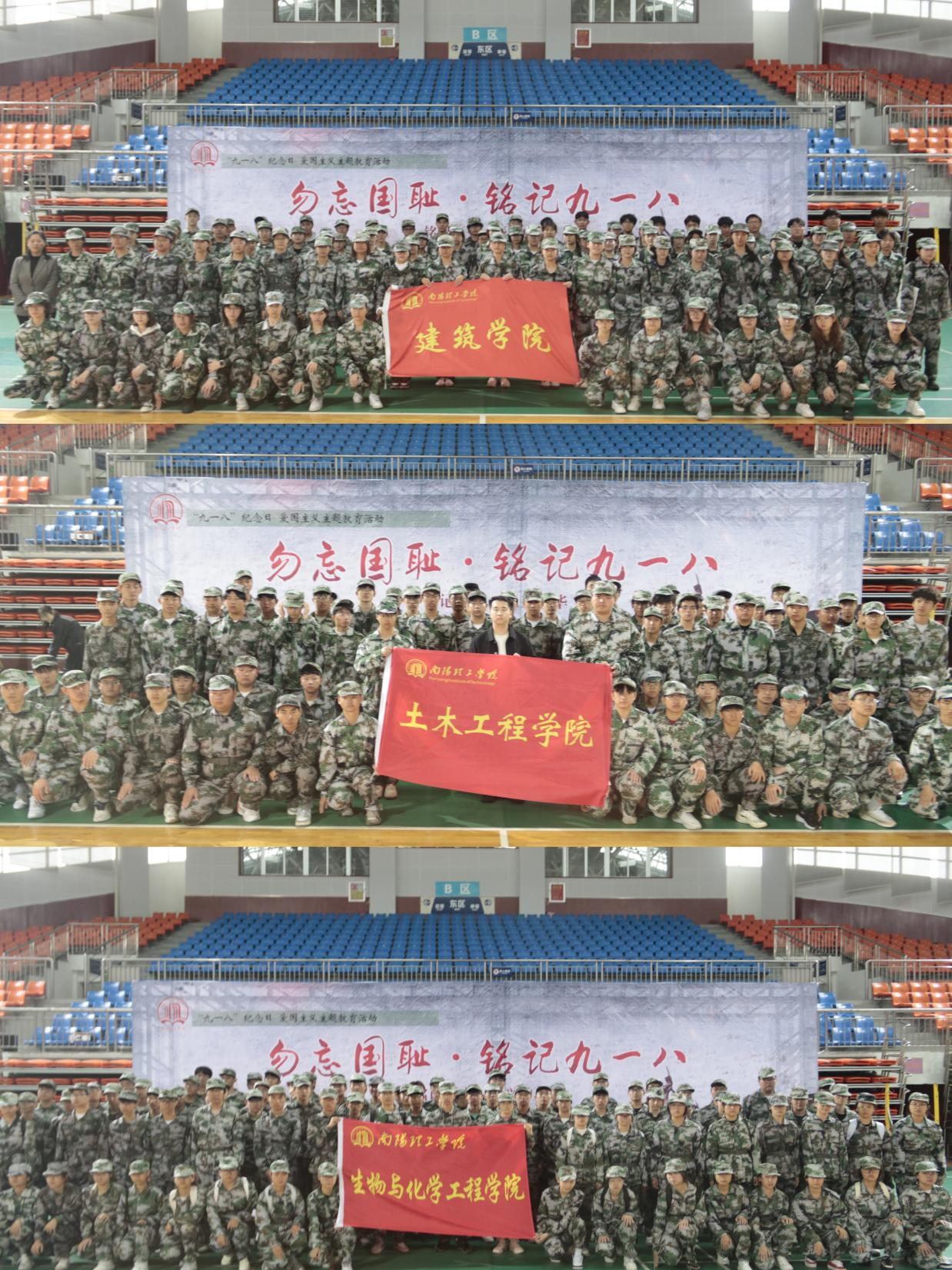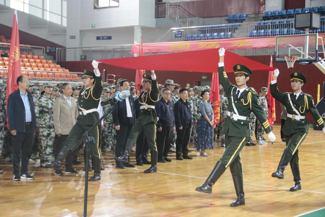 本网讯(特约记者/田真 学生记者/陈越)秋雨绵绵寄哀思,红旗飘扬唤深情。9月18日,“勿忘国耻,铭记九一八”爱国主义主题教育活动在东南体育馆二楼庄严举行。校党委副书记、工会主席董豪出席并讲话,相关职能部门负责人及全体军训连队师生到场参加。