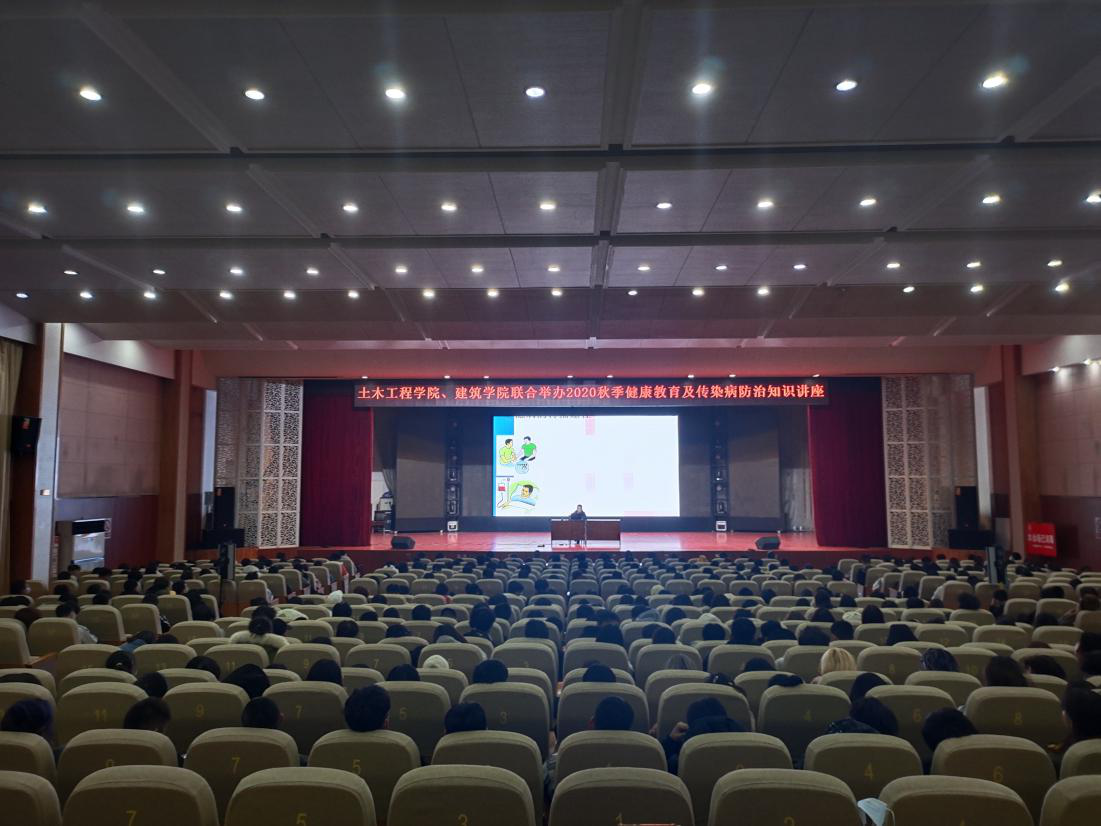 (通讯员 张莎莎)为进一步加强我校传染病防控工作,提高在校学生自我防护意识,11月22日晚,6686体育、土木工程学院在小礼堂联合举办2020年秋季健康教育及传染病防治知识讲座。校医院党政办副主任、校医院隔离病区主任、主治医师、全科医师李俊通主任受邀主讲,6686体育、土木工程学院全体20级新生参加学习。