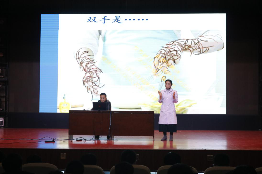 结合我国当下形势,李俊通主任先向同学们普及了疫情形势下传染类疾病相关法律法规。随后,李俊通主任以“健康教育及传染病防治知识”为主题,向20级新生深入浅出的讲解了典型传染病,并普及具体防治措施。在讲解有效预防措施时,温海燕护士当场示范洗手的正确姿势和步骤,并向同学们演示了正确佩戴口罩的方法。洗手和佩戴口罩是预防传染病的两大有效措施,掌握正确预防方法十分必要。讲座最后,李俊通主任提出,注意外部传染的同时也要增强日常卫生意识,加强体育锻炼,增强免疫力,减小被传染几率。