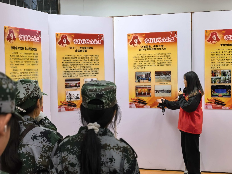 身着军训服的新生们在军训场地集合,有序前往展馆。馆内,图文展板、实物展品与讲解员的生动讲述相互配合,让抽象的志愿精神变得可感可触。新生们驻足聆听,不时在重点展品前交流感悟,现场学习氛围浓厚。