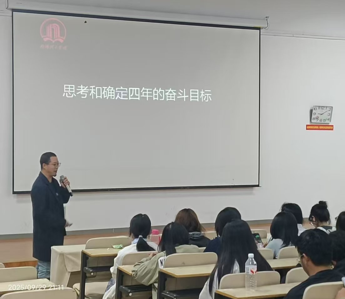 本网讯(学生记者/陈越)为帮助2025级新生尽快了解专业、融入专业学习,9月29日,我院于7阶101教室举办新生专业认知教育活动,学院专业教师团队与2025级全体新生面对面交流,为新生开启“专业启蒙第一课”。