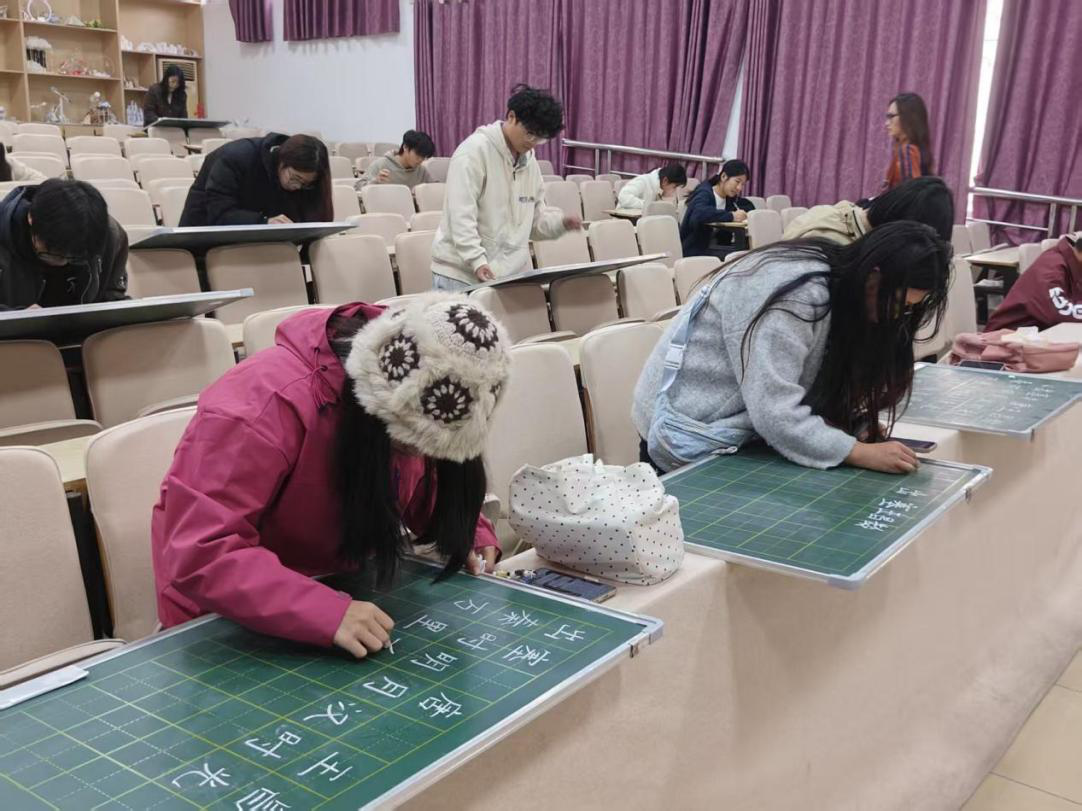 活动开始前,主持人详细介绍了本次比赛的各项规则和书写评分标准,确保每位参赛选手对比赛要求有清晰的理解。比赛过程中,参赛选手全神贯注、凝神书写,分别使用钢笔、毛笔和粉笔,在各自指定的区域认真书写规定内容,有的沉着运笔,有的细致勾勒,力求在作品中展现出自己最高的书写水平和最好的艺术表现。