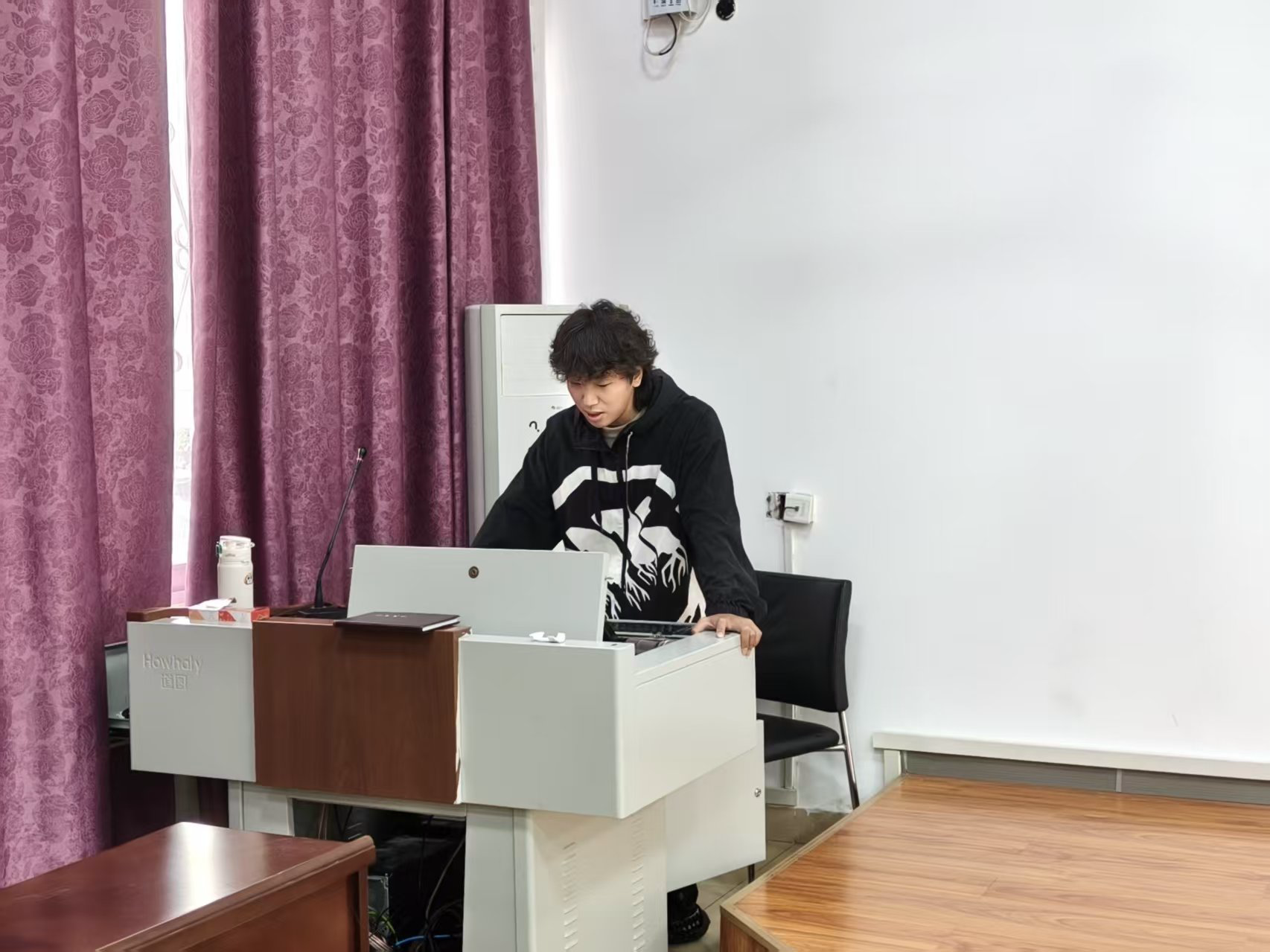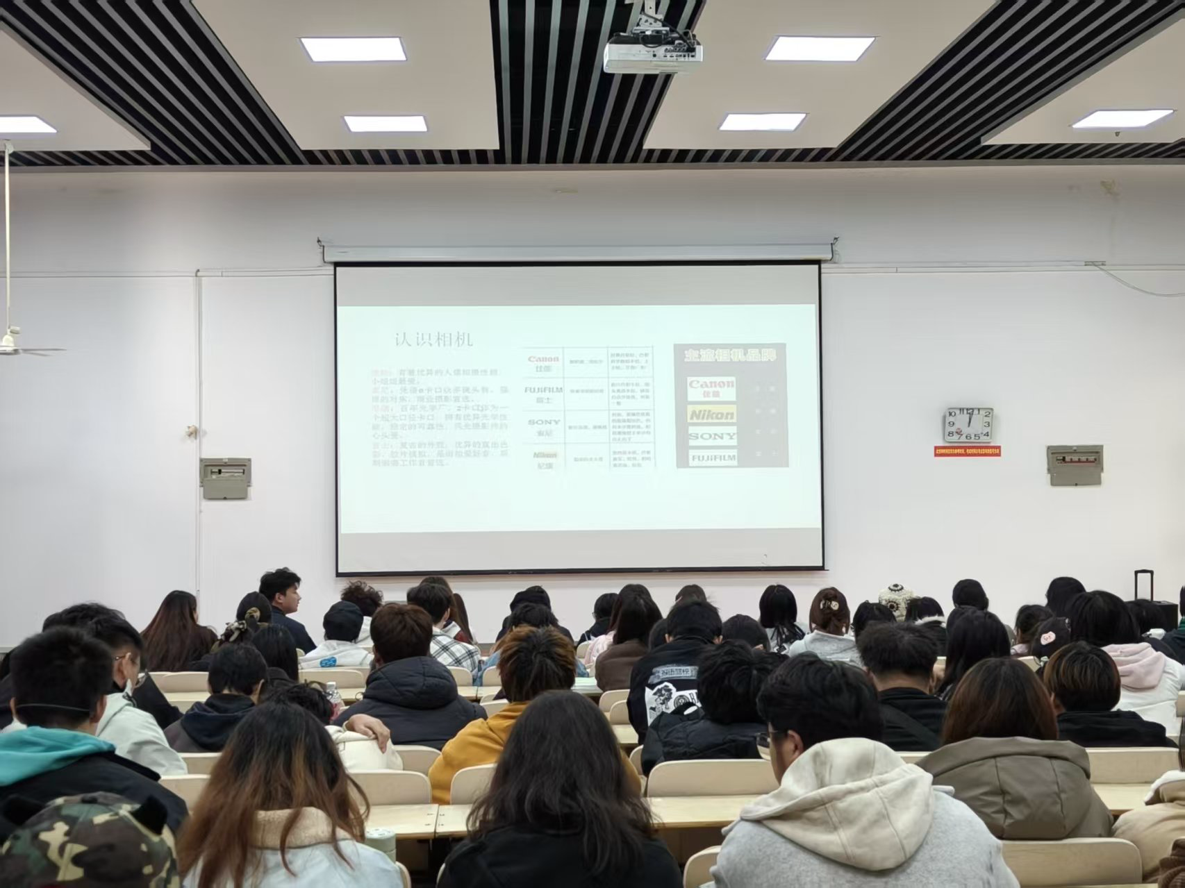培训中,主讲人结合场景特点,重点讲解了如何快速捕捉学院活动中的“决定性瞬间”,并强调了新闻摄影的真实性原则。同时,主讲人还现场演示了相机的常用设置,如光圈优先模式控制景深、白平衡校准色彩等实用技巧,指导学生干部即使在活动场地光线复杂的条件下也能拍出主题突出、画面生动的照片。