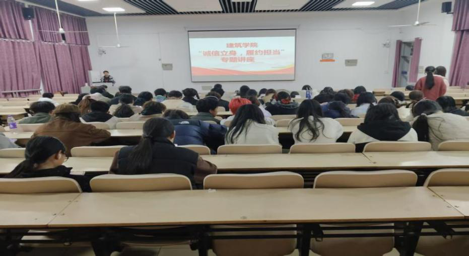 本网讯(学生记者/李春蕾)为强化学生诚信意识,引导广大学子树立正确的道德观,11月14日,我院在7阶101报告厅成功举办“诚信立身,履约担当”专题讲座。学院资助工作站站长金城宇担任主讲,倡导广大学生要树立“诚信为本 信誉为重”的思想观念,有效强化了学生的诚信意识与责任担当,为学院学风建设和人才培养工作注入了新的动力,打下了坚实的思想基础。