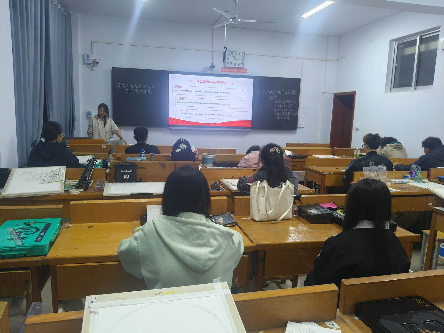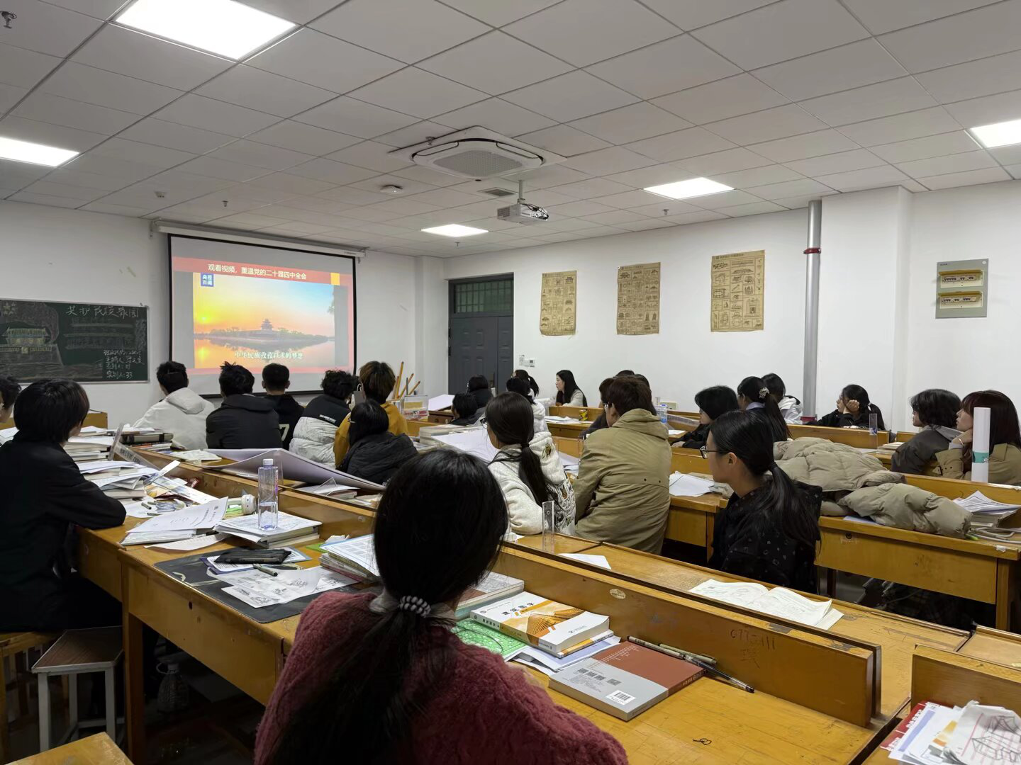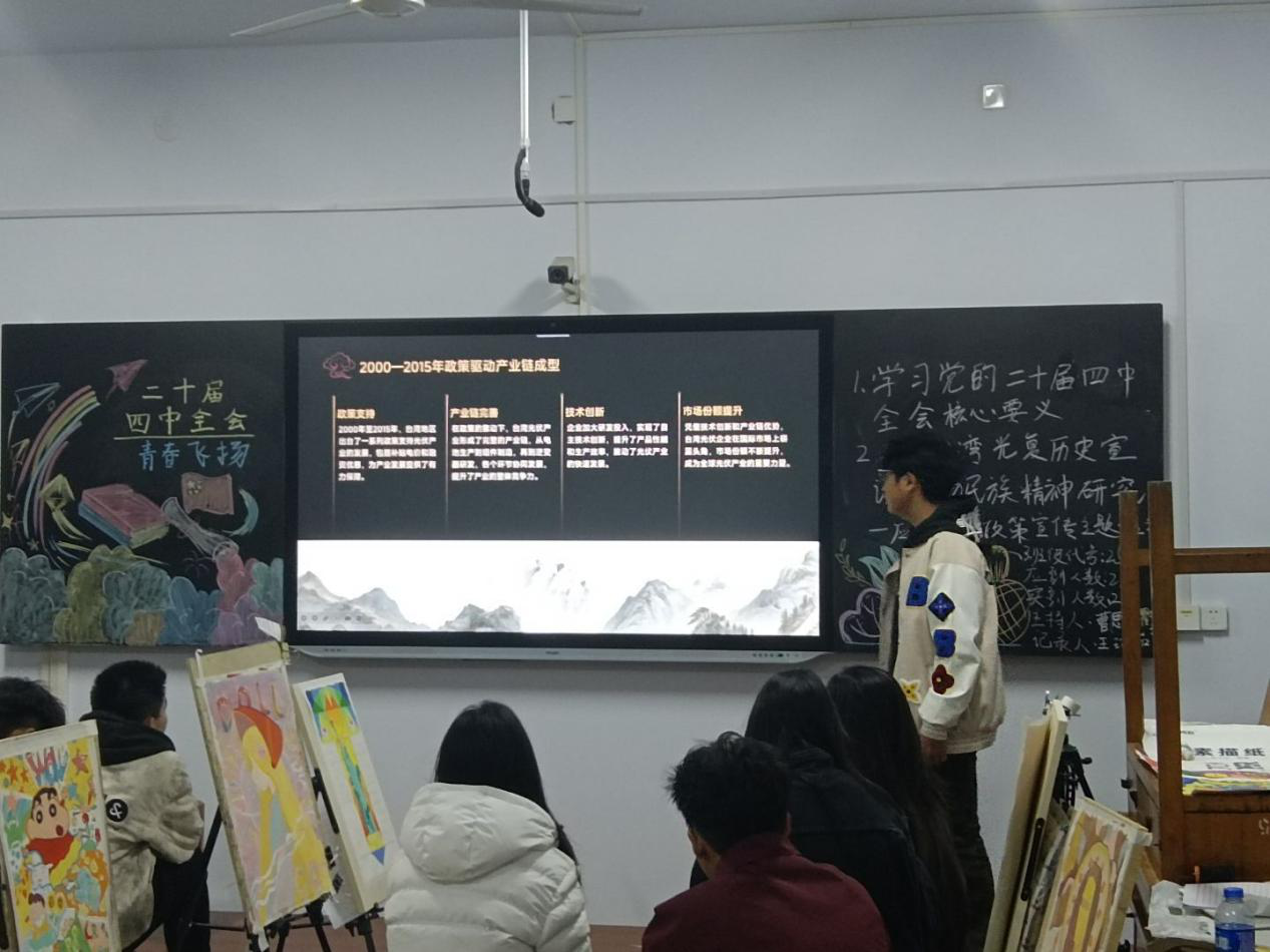 活动中,各班班委通过图文展示、要点讲解等方式,引导同学们聚焦全会擘画的“十五五”规划蓝图,并通过播放台湾回归的历史纪录片,集体重温了1945台湾及澎湖列岛正式重归中国主权管辖的重要历史事件。同学们全程认真观看,热烈讨论,纷纷表达坚决拥护祖国统一的坚定立场。