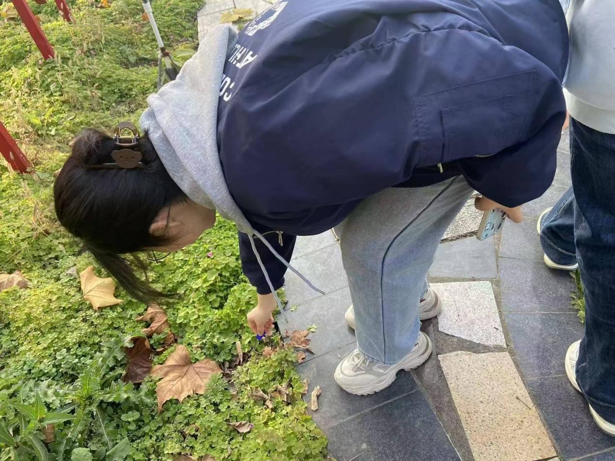 活动当天,志愿者手持垃圾袋、夹子等工具,前往指定区域开展了长达两个小时的清洁行动。大家分工明确、默契配合,重点清理路面散落的塑料瓶、食品包装袋、纸屑等生活垃圾,对隐藏在草丛、角落中的顽固垃圾进行细致捡拾。弯腰、俯身、夹取、分类,社员们以认真负责的态度,让每一处被清理的区域都恢复整洁。