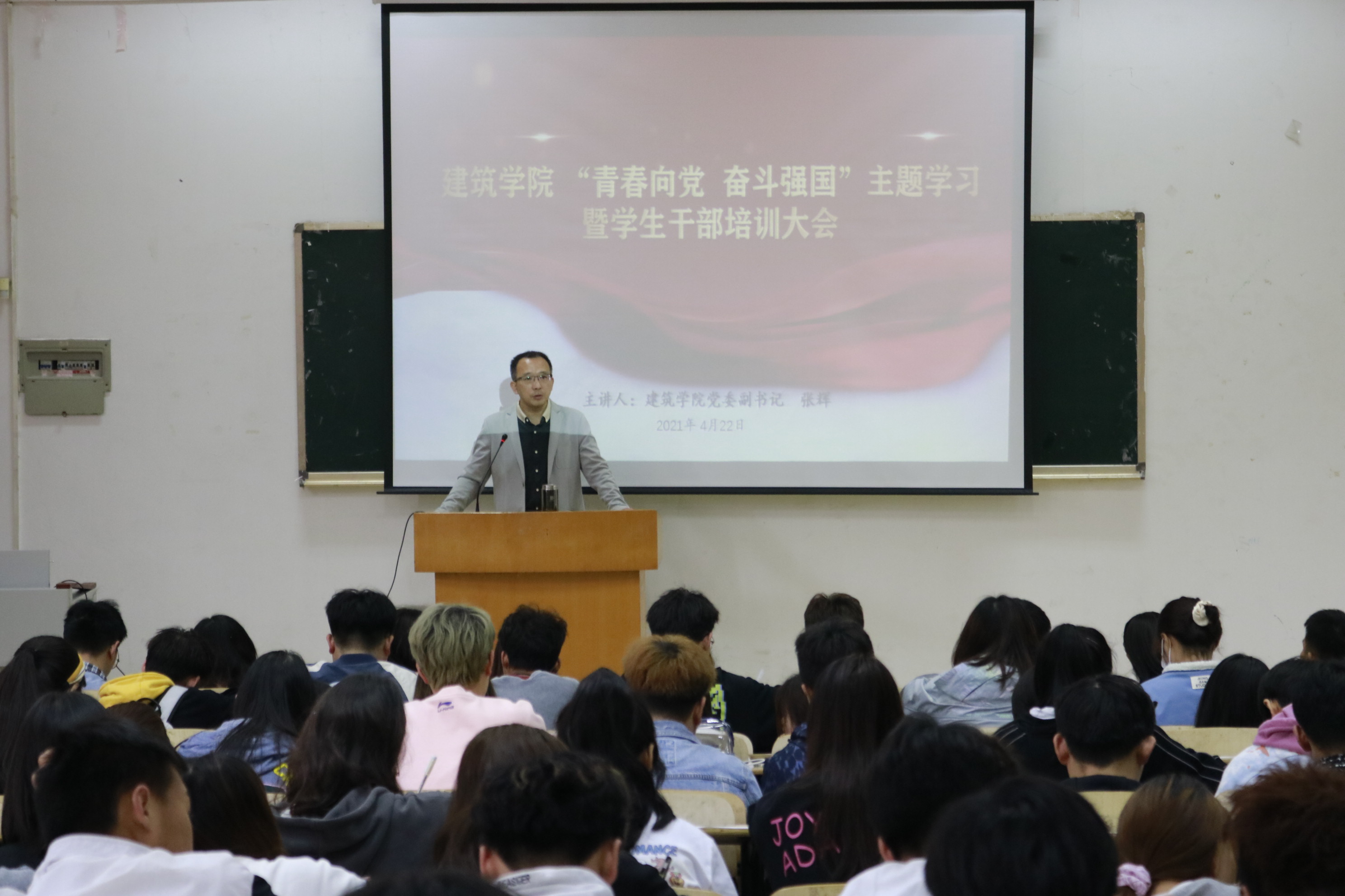 本网讯(特约记者/李延克学生记者/张珂晴)为引导我院学子深入贯彻学习习近平新时代中国特色社会主义思想,进一步加强6686体育学生干部队伍建设,4月22日,6686体育举办了“青春向党,奋斗强国”主题学习暨学生干部培训大会。6686体育党委副书记张辉主持,团学办全体老师、学生组织全体成员、各班班长团支书参加本次培训。