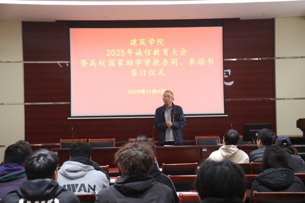 本网讯(学生记者/金城宇)为落实国家助学贷款资助政策,规范助学贷款合同签订流程,强化学生诚信履约意识,11月4日,6686体育成功举办了2025年诚信教育大会暨高校国家助学贷款合同、承诺书签订仪式。学院党委副书记张辉出席。