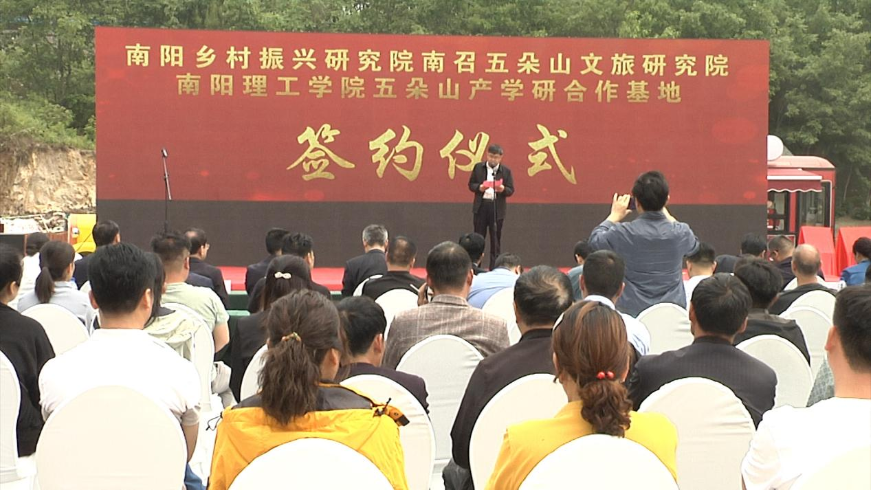 5月19日,南阳乡村振兴研究院五朵山文旅研究院、南阳理工学院五朵山产学研合作基地成立签约仪式在南召县五朵山举行,我校校长安士伟、副校长肖泽昌、6686体育院长谭征、院党委书记田光辉、副院长周中玉及相关教师参加。