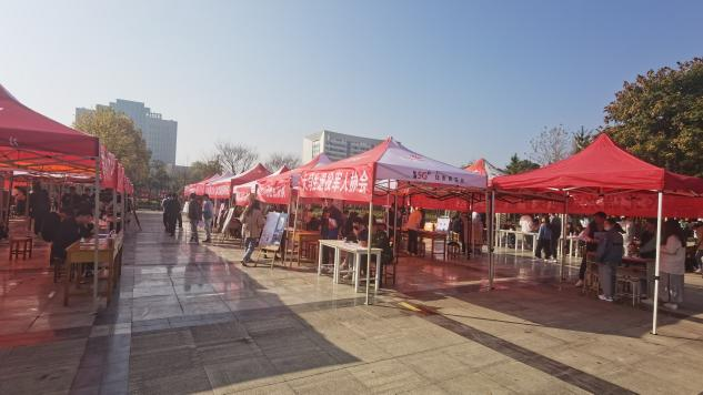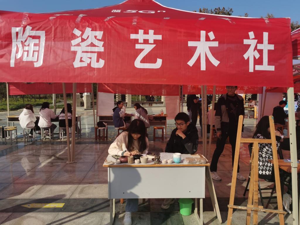本网讯(学生记者/李凤珠)为进一步扩充学校社团力量,提升学生社团影响力,帮助新生更好融入大学生活。10月30日,我校在齐贤广场举办“百团大战”活动。我院苜蓿社、文遗社、陶艺社、博谊棋轩社参加此次活动。
