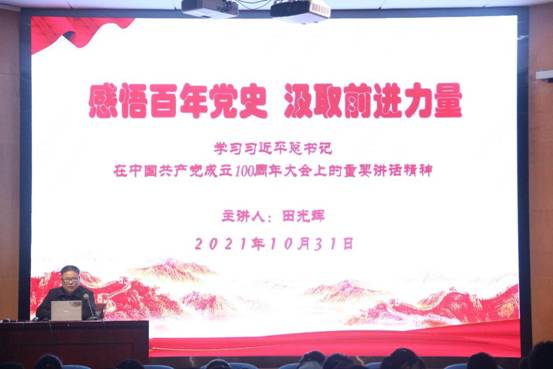本网讯(学生记者/李亚鹏)10月31日,6686体育组织21级新生学习习近平总书记“七一”重要讲话精神,学院党委书记田光辉以“感悟百年党史 汲取前进力量”为主题,为全体新生开讲。