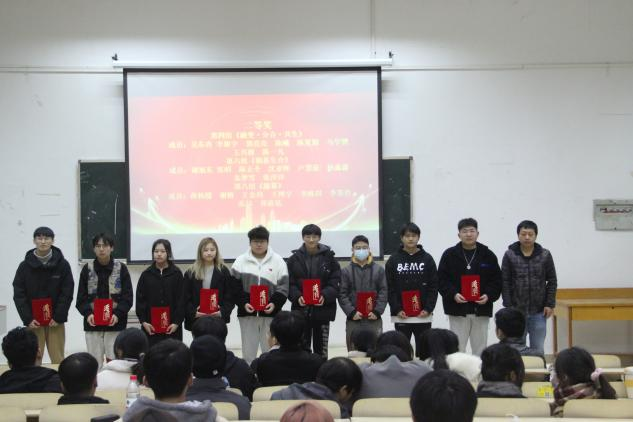 学院团委书记李欣首先总结了2021年度我院学子在学科竞赛中取得的成绩,并对2022年学科竞赛的启动提出了建议和展望。随后,王飞老师宣布大赛获奖名单,相关指导老师为获奖人员颁奖并合影留念。
