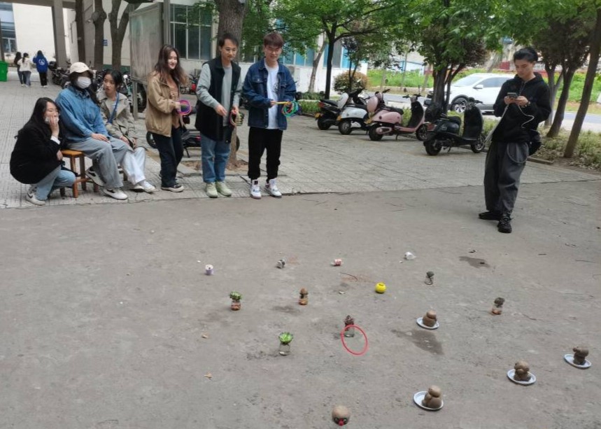 活动现场,同学们充分发挥想象力,用画笔和防水颜料制作出用来宣传节约资源、传播地球环保理念的海报,并用胶水、卡纸制作出造型多样的环保手工作品,以此来换取套圈带走小礼品的机会,大家开动脑筋齐动手,节约资源、爱护地球的理念也在大家心中生根发芽。