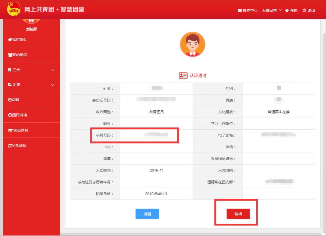 过段时间再次登录系统,点击首页右上角操作中心,如果审批结果为不同意,核实个人信息以及转入团支部信息是否正确,填入正确信息再次转入。