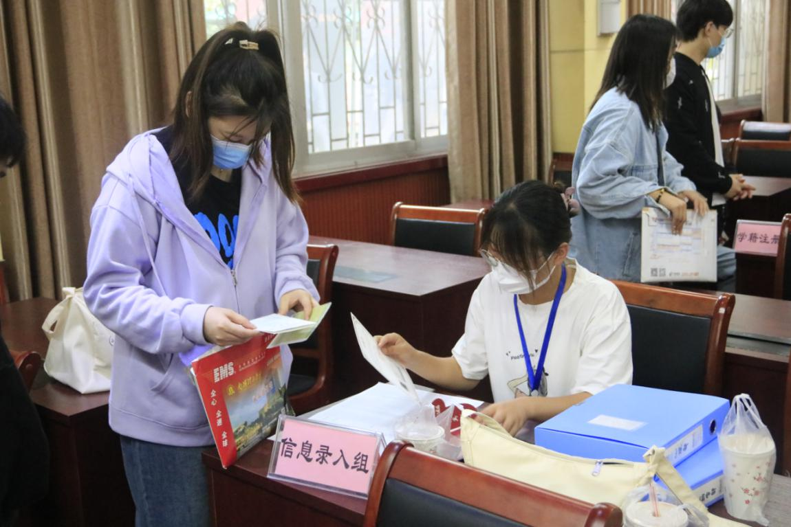 一站式入学手续办理地点设置在7号楼106会议室,在志愿者的引导下,同学们有序办理着团关系转接、校园卡、银行卡等相关手续。针对新生及家长遇到的各种问题,志愿者们耐心答疑解惑,细致周到、规范有序的工作态度赢得了学生和家长的一致好评,也大大减少了新生初入校园的陌生感。