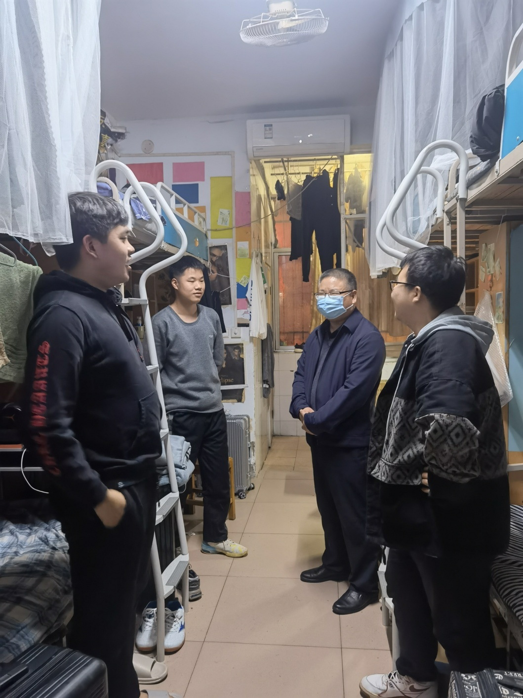 走访中,学院领导与同学们亲切交谈,从饮食起居、疫情防控、校园安全、学业规划等方面详细了解情况,关心学生生活,询问学习状态,听取学生建议,收集学生诉求,并对寝室的卫生与安全提出要求。