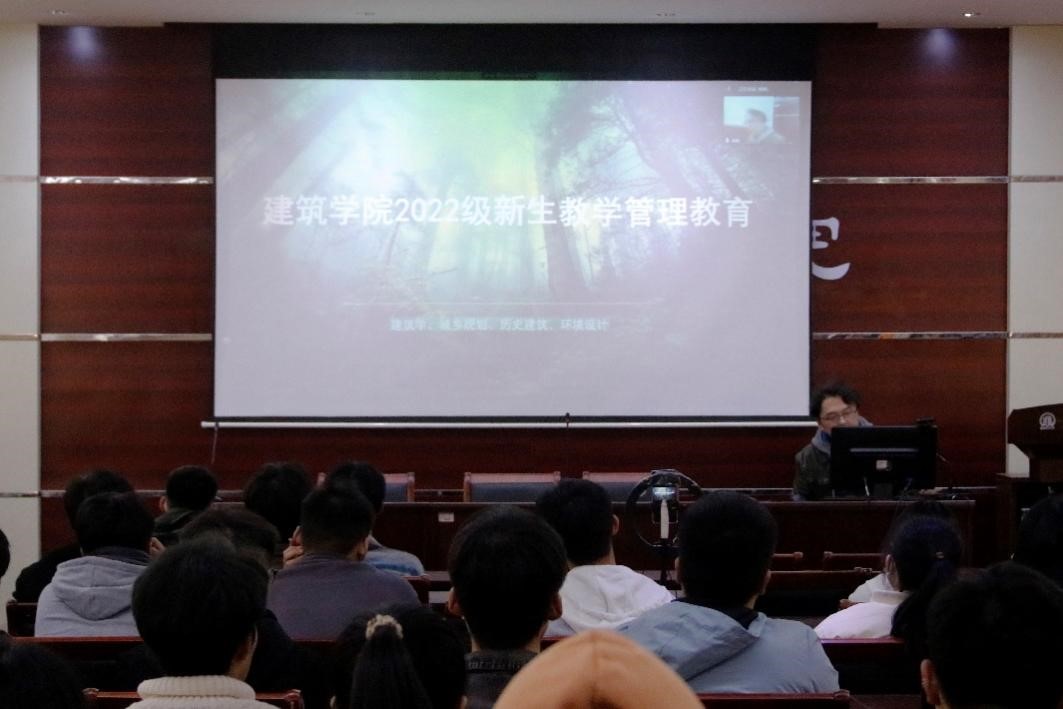 本网讯(学生记者/张思维)为向我院学生普及学院教学管理规章制度,引导22级新生尽快适应校园的学习和生活。11月17日晚,6686体育于七教106举办新生起航教育——2022级新生教学管理教育讲座。我院教务办主任杨帆老师担任主讲,22级部分学生到场聆听,其余学生通过腾讯会议线上参会。