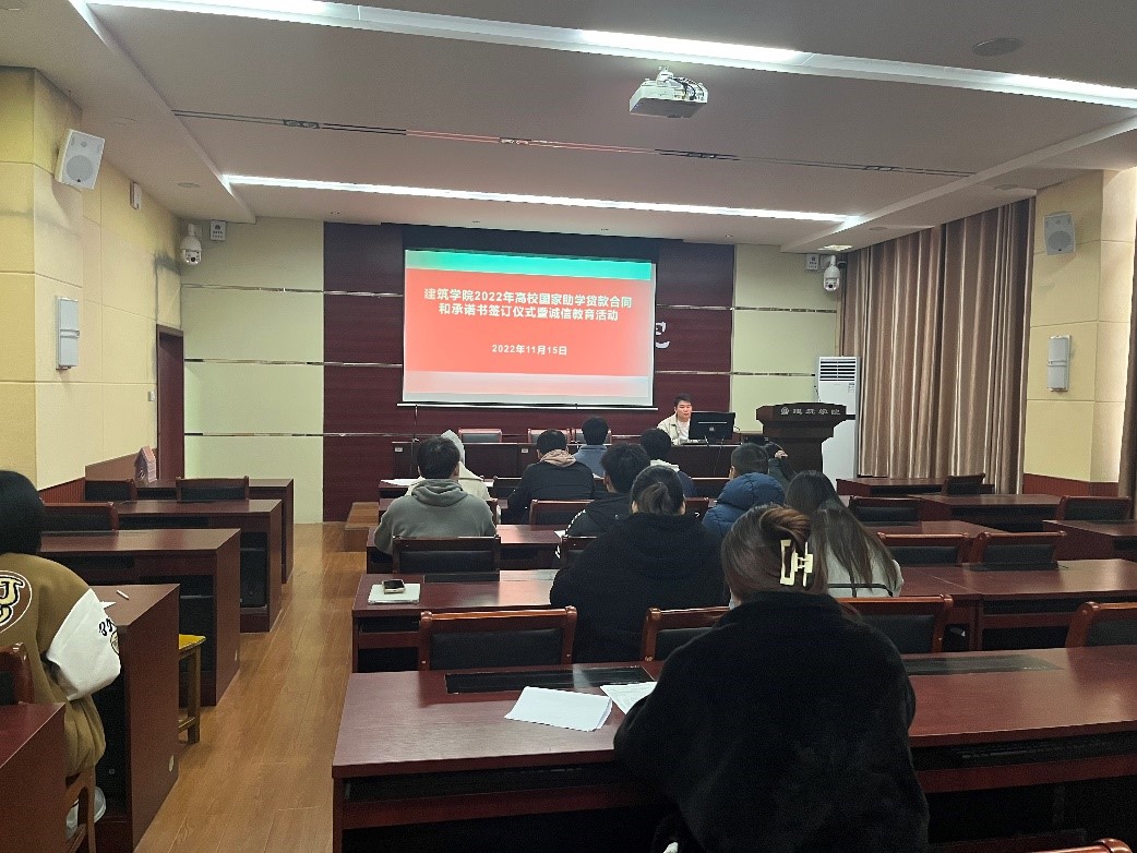 本网讯(学生记者/陈昱晗)为进一步强化我院助学贷款学生的诚信教育,完善助学贷款各项工作流程,11月15号,我院在7教106举办2022年度高校国家助学贷款合同和承诺书签字仪式暨诚信教育活动。学院资助专干李明东老师担任主讲,申请高校助学贷款的学生到场参加。