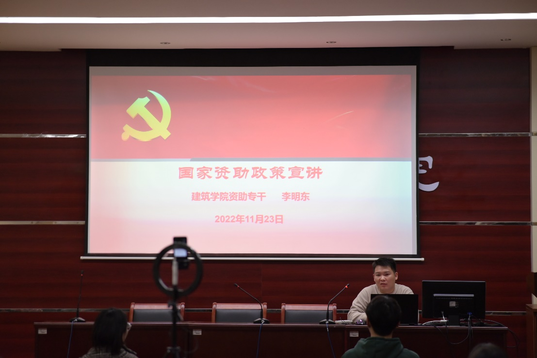 会议上,李明东老师从国家奖助学金、国家助学贷款、服兵役国家资助、勤工助学等方面详细介绍了国家对高校学生的资助政策体系,随后,又对国家奖学金和助学金的含义及助学贷款的申请额度和申请条件进行了详细的讲述,并鼓励同学们在大学期间努力奋斗,积极上进,用行动来回报祖国、回报社会。