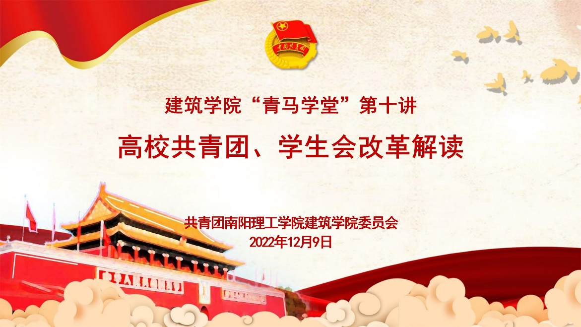 青春由磨砺而出彩,人生因奋斗而升华。通过此次学习,建筑学子将更加紧密团结在以习近平同志为核心的党中央周围,以青春之我、奋斗之我投身于伟大事业,在火热实践中展现担当作为、施展抱负才华,为高校共青团、学生会改革作出新的贡献,在实现中华民族伟大复兴中国梦的长征路上奋勇搏击,让青春在为祖国、为人民的奉献中焕发出更加绚丽的光彩。
