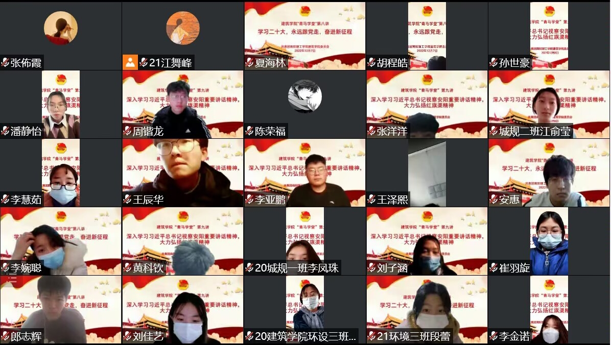 本网讯(学生记者/布弯月)12月8日下午,6686体育于线上举办“青马学堂”第九讲,主题为“深入学习习近平总书记重要讲话,大力弘扬红旗渠精神”。我院第六期青马学员参加。