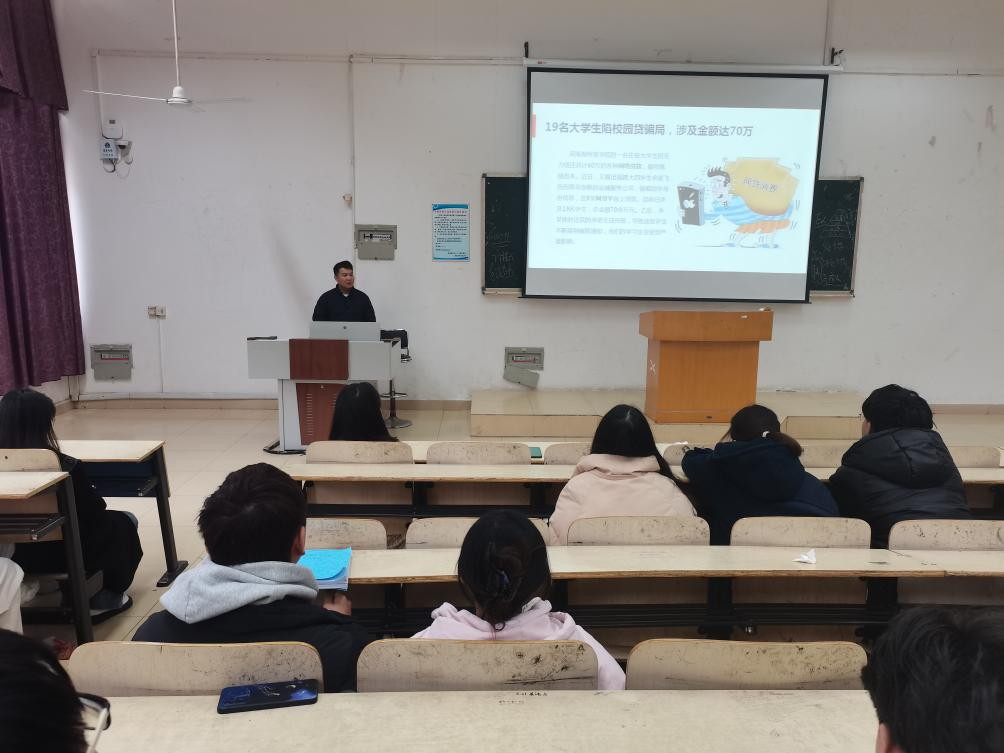 本网讯(学生记者/韩迎春)为进一步加强学院防诈骗的宣传教育,有效遏制电信网络诈骗案件的发生,3月21日下午,我院于七教101开展防诈骗主题宣讲会。此次宣讲会由李明东老师主持,我院全体学生干部到场参加。